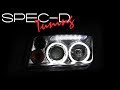 • Black housing, smoked lens dual halo projector headlights with LED light strip